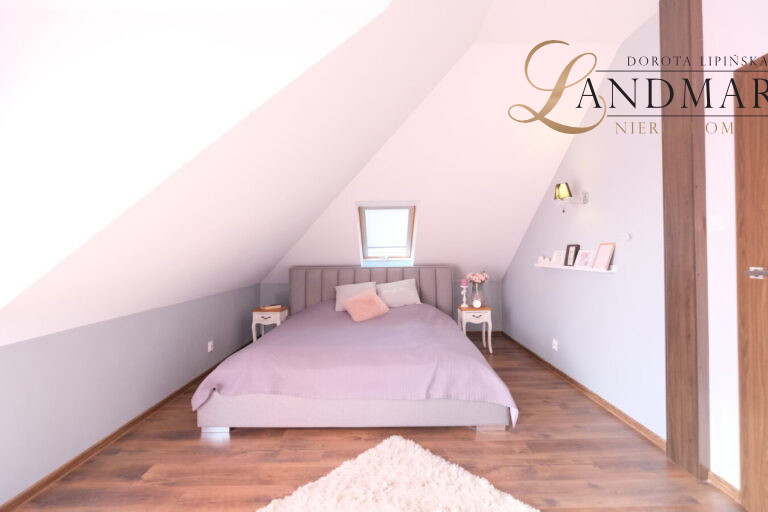 Piętro: 3 sypialnie, łazienka, garderoba (możliwość dodatkowego pokoju)